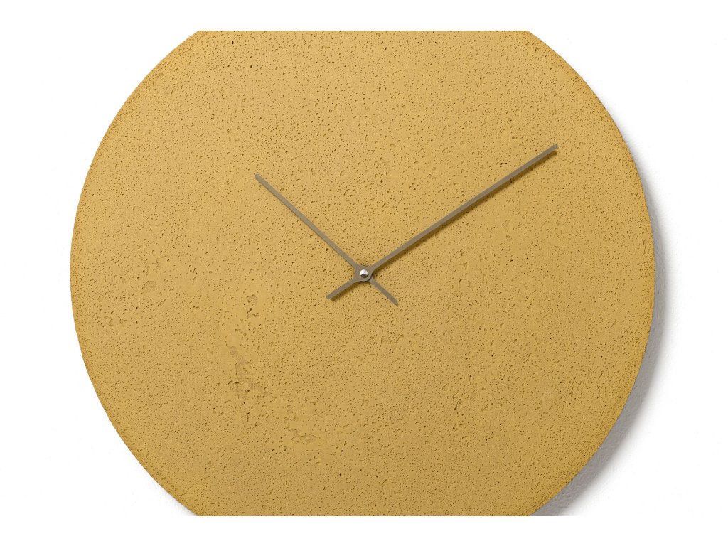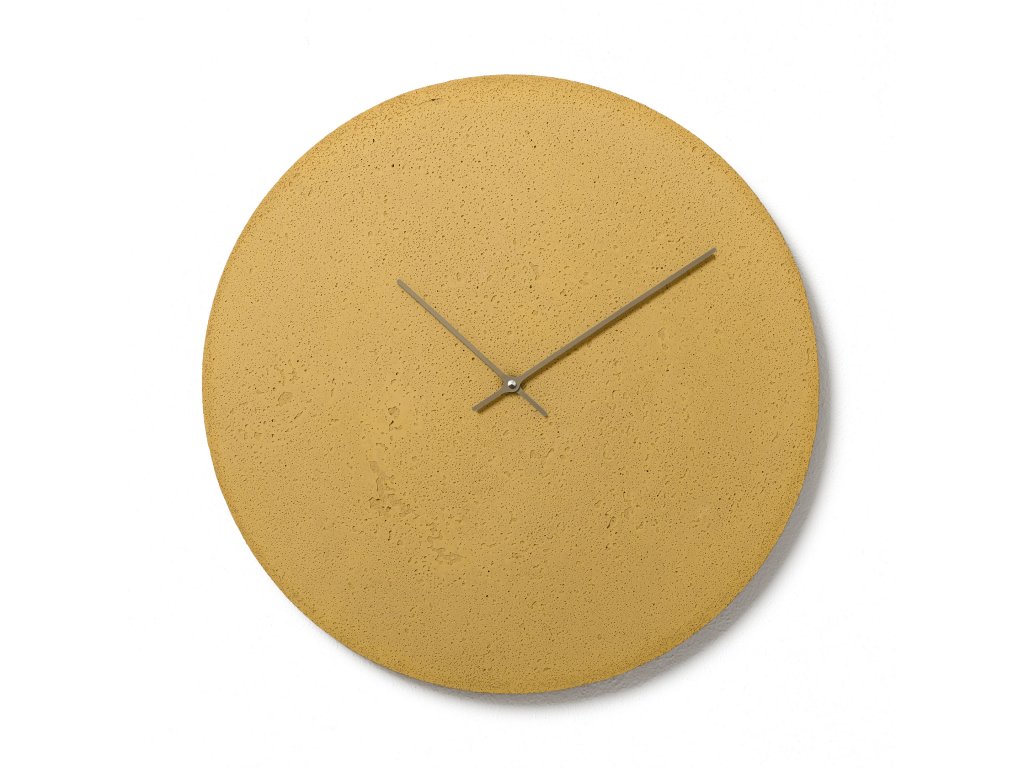 "Žluté hodiny vnáší optimismus a uvolnění do interiéru. Velké nástěnné hodiny jsou ideálním doplňkem pro větší obývací pokoje, kuchyně nebo designové recepce. Rozměrově větší ciferník zapadne do místností s vyššími stropy (pozn. 3,5 m)."