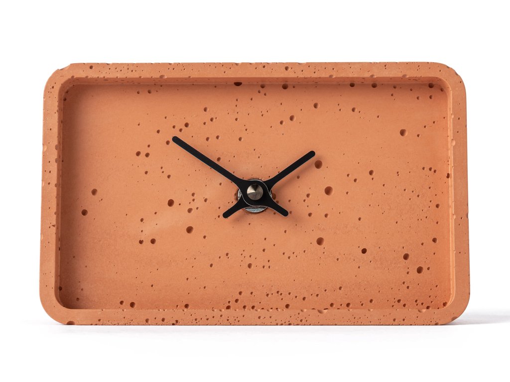 "Oranžové hodiny jsou vhodné do kreativního, veselého a hravého prostředí. Jsou ideálním doplňkem pro pracovny, kanceláře a jednací místnosti s pocitem stability a jistoty. Obdélníkové hodiny snadno umístíte na pracovní stůl, do knihovny či volně na poličku. Černá barva ručiček je vhodná do všech moderních interiérů."